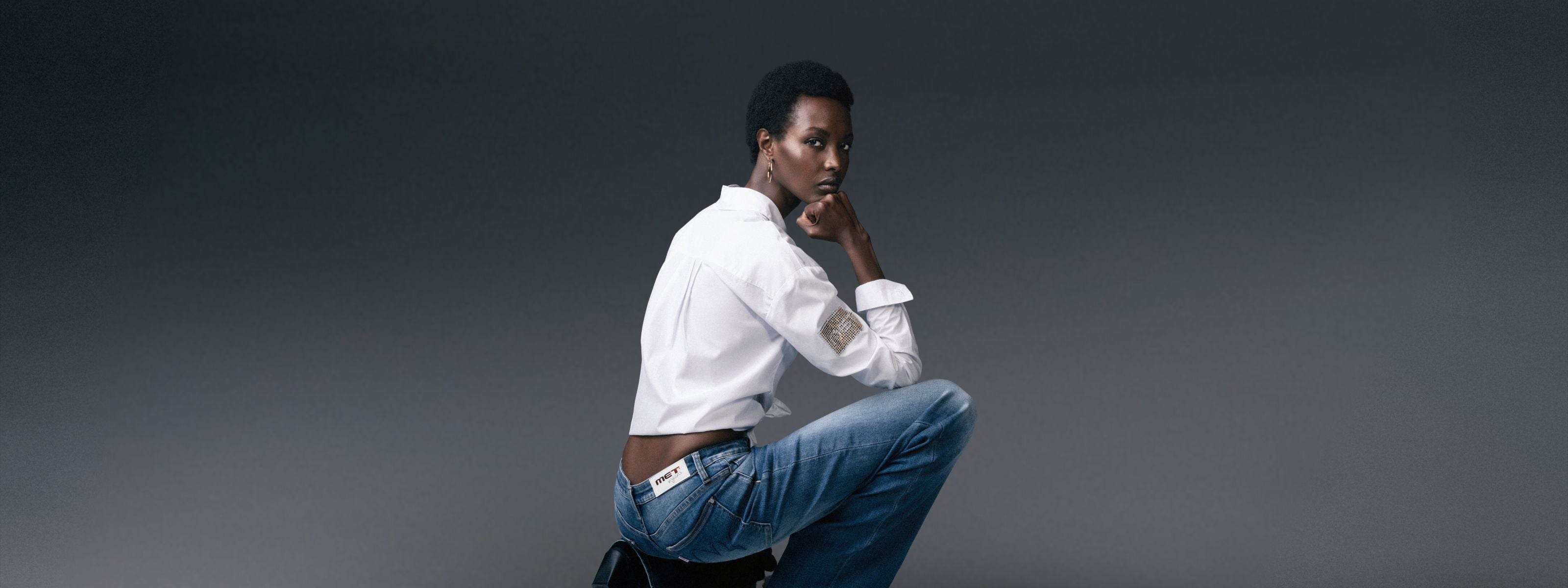 Jeans Gamba Dritta Blu Scuro A Vita Alta Con Perle